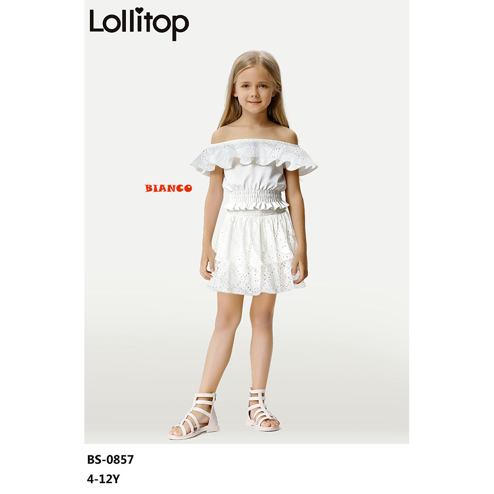 Completo estate bambina composto da top e gonna in pizzo di cotone Lollitop Tg. 4/12 Assortimento per Tg. e colore min. 5 pz. Tg. 4-6-8-10-12