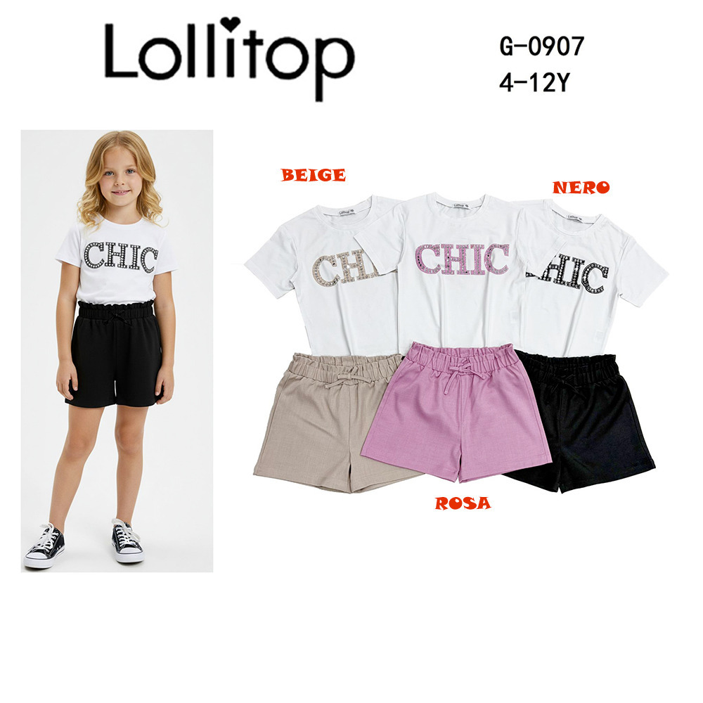 Completo estate bambina composto da t-shirt m/m e short in cotone Lollitop Tg. 4/12 Assortimento per Tg. e colore min. 5 pz. Tg. 4-6-8-10-12