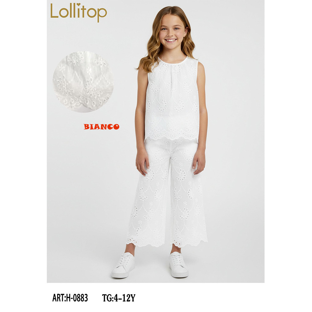 Completo estate bambina composto da top e pantalone cropped in pizzo di cotone Lollitop Tg. 4/12 Assortimento per Tg. e colore min. 5 pz. Tg. 4-6-8-10-12