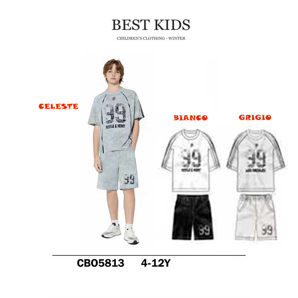 Completo bambino estate composto da t-shirt m/m e bermuda in jersey Best Kids Tg. 4/12. Assortimento per Tg. e colore min. 5 pz. Tg. 4-6-8-10-12