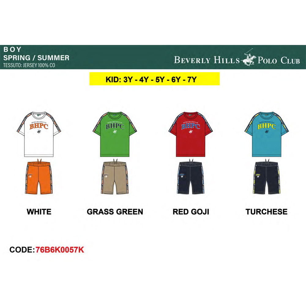 Completo bambino estivo con t-shirt e bermuda in cotone Polo Club Tg. 3/7 Assortimento per Tg. e colore min. 5 pz. Tg. 3-4-5-6-7