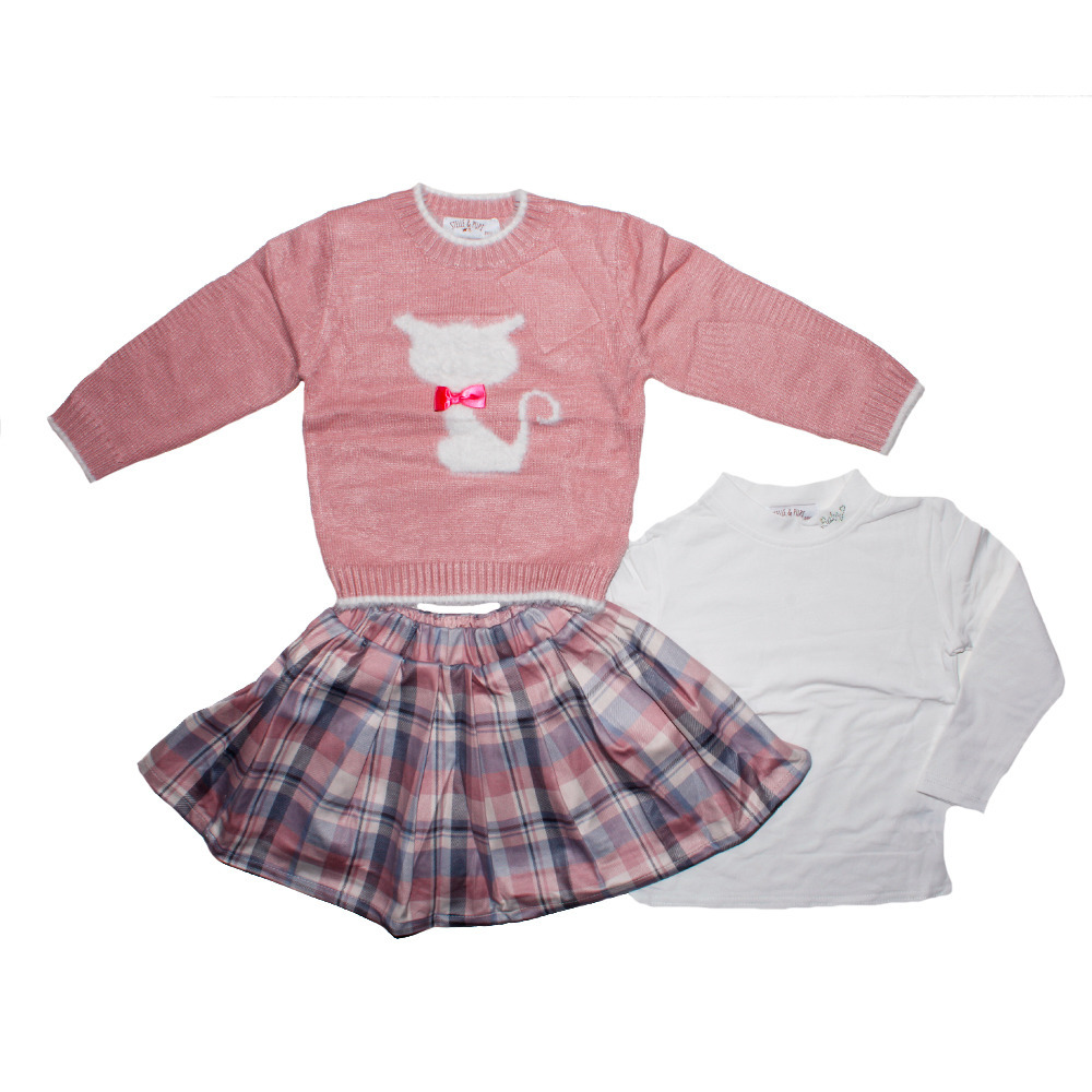 Completo neonata inverno con maglia manica lunga, gonna e maglioncino a paricollo Tg. 12/36 Assortimento per Tg. e colore min. 4 pz. Tg. 12/18-24-30-36