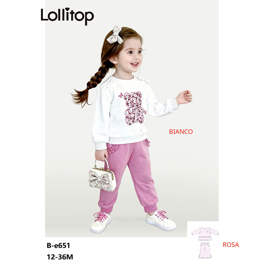 Completo neonata primavera con felpina e pantalone in cotone Lollitop Tg. 12/36. Assortimento per Tg. e colore min. 5 pz. Tg. 12-18-24-30-36