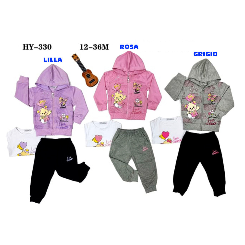 Completo primavera neonata composto da felpina con zip e cappuccio, t-shirt e pantalone in felpina Mouset Tg. 12/36 Assortimento per Tg. e colore min. 5 pz. Tg. 12-18-24-30-36