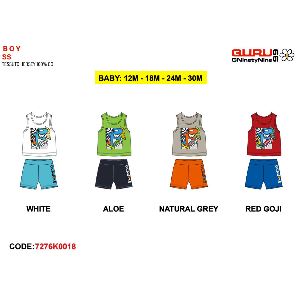 Completo neonato estivo con canotta e bermuda in cotone Guru Tg. 12/30 mesi Assortimento per Tg. e colore min. 4 pz. Tg. 12-18-24-30