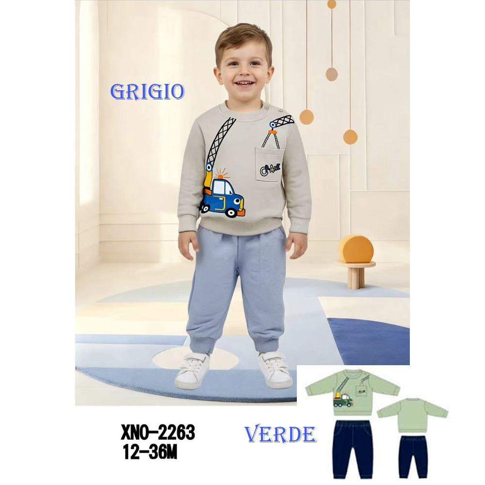 Completo neonato primavera composto da felpina e pantalone in cotone Alta Linea Tg. 12/36 Assortimento per Tg. e colore min. 5 pz. Tg. 12-18-24-30-36
