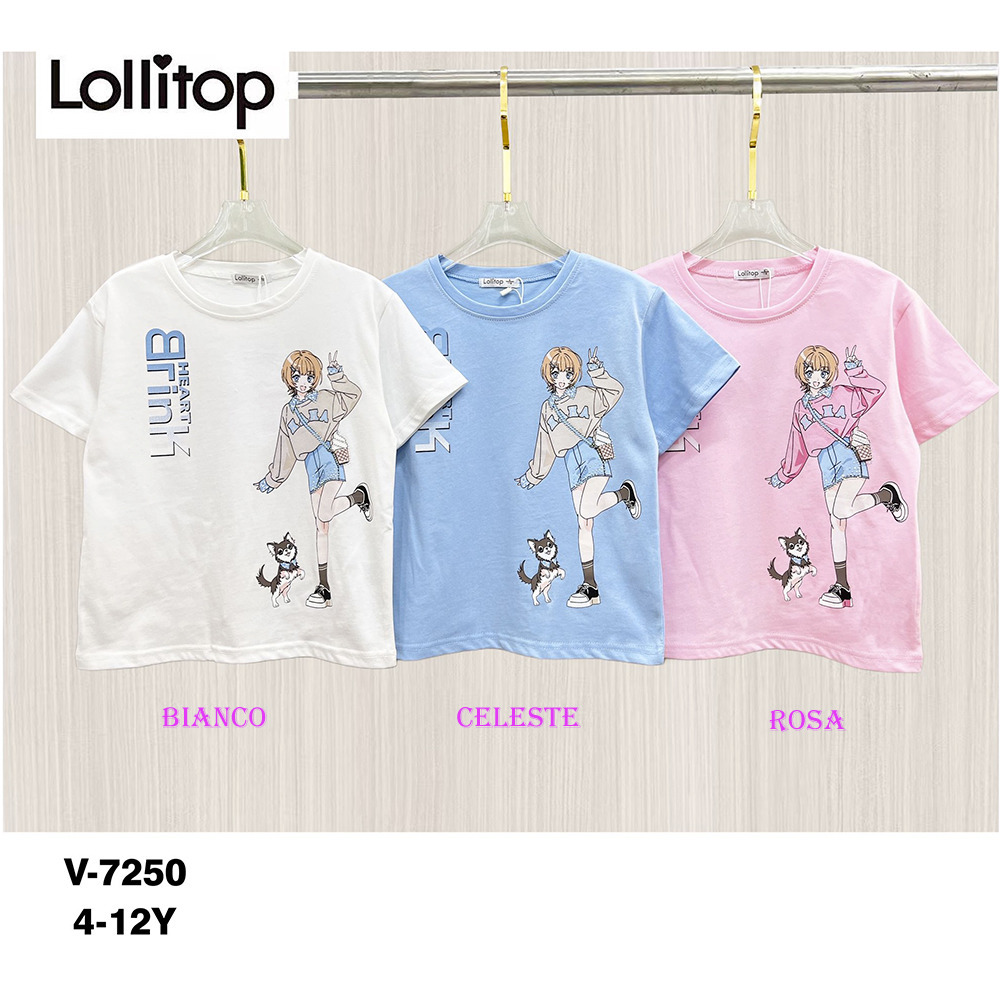 T-Shirt m/m estate bambina Lollitop in cotone Tg. 4/12. Assortimento per Tg. e colore min. 5 pz. Tg. 4-6-8-10-12