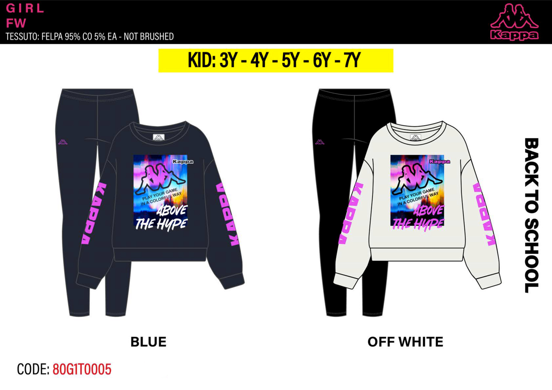 Tuta bambina primavera composta da felpina a paricollo, pantalone in cotone Kappa Tg. 3/7 Assortimento per Tg. e colore min. 5 pz. Tg. 3-4-5-6-7