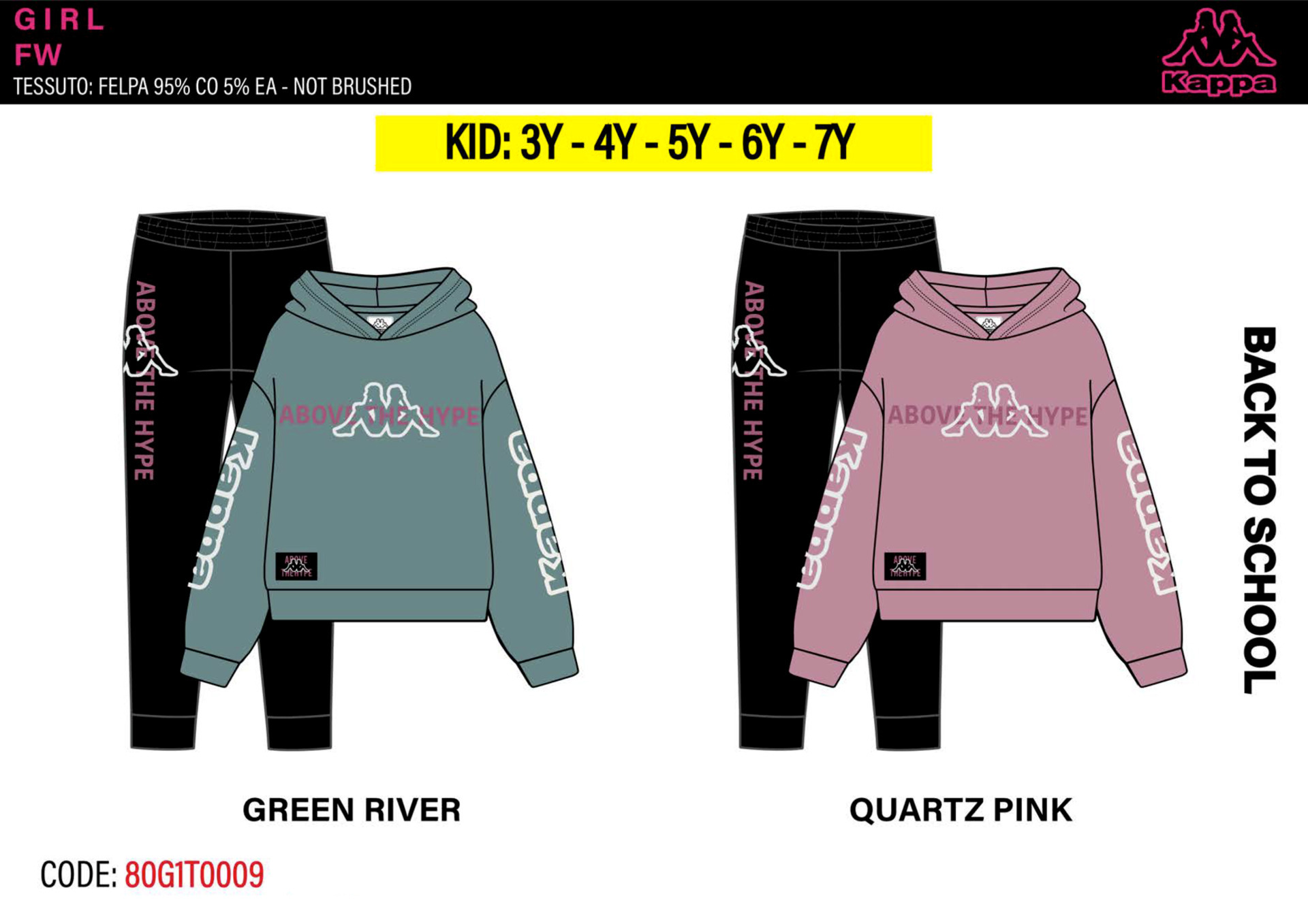 Tuta bambina primavera composta da felpina con cappuccio, pantalone in cotone Kappa Tg. 3/7 Assortimento per Tg. e colore min. 5 pz. Tg. 3-4-5-6-7