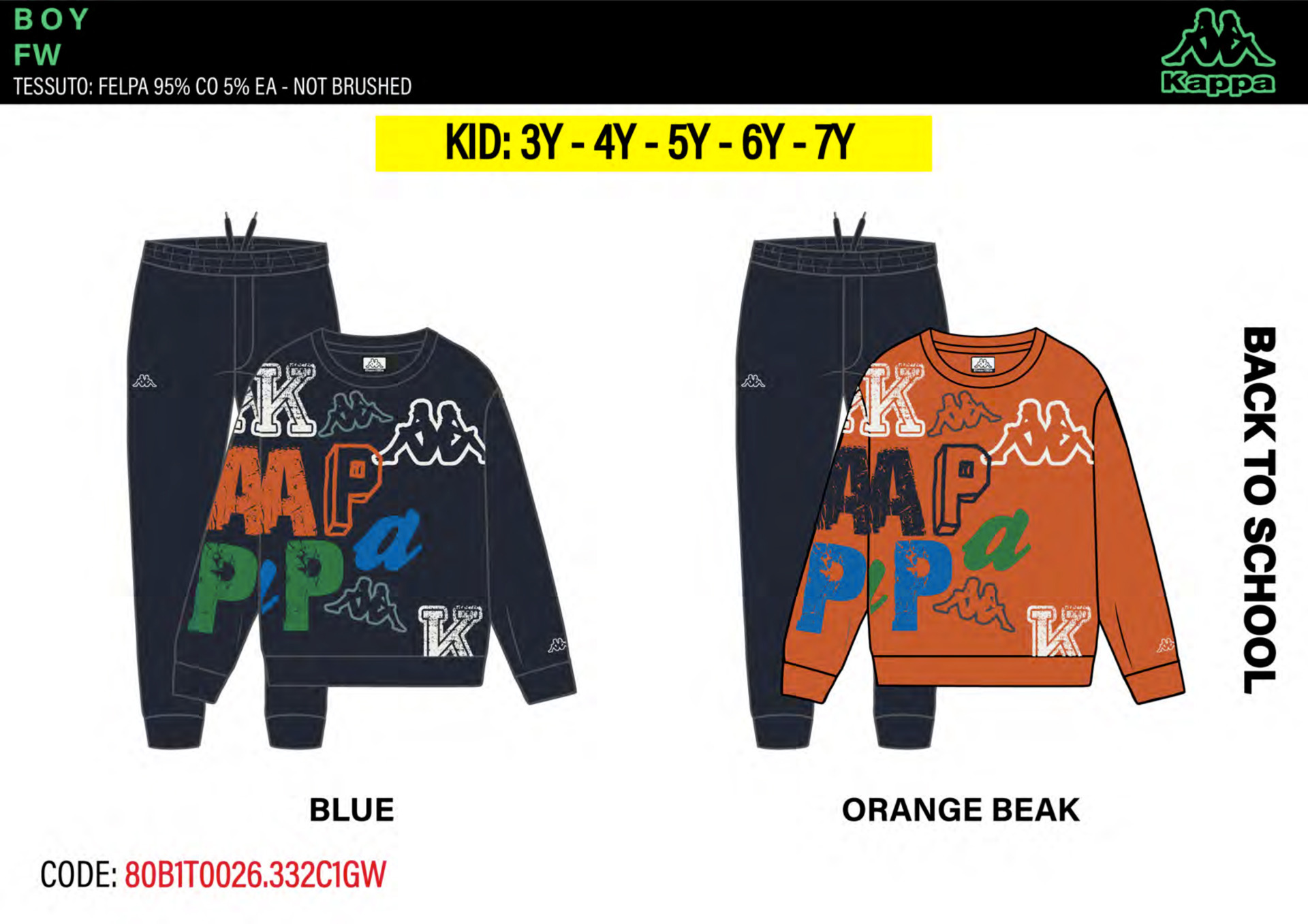 Tuta bambino primavera composta da felpina a paricollo, pantalone in cotone Kappa Tg. 3/7 Assortimento per Tg. e colore min. 5 pz. Tg. 3-4-5-6-7