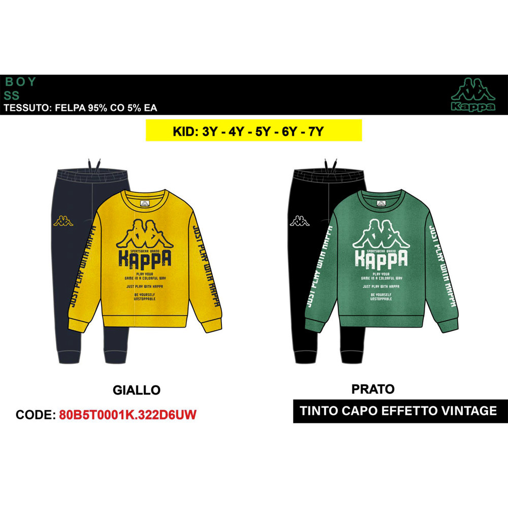 Tuta bambino primavera composta da felpina a paricollo, pantalone in cotone Kappa Tg. 3/7 Assortimento per Tg. e colore min. 5 pz. Tg. 3-4-5-6-7
