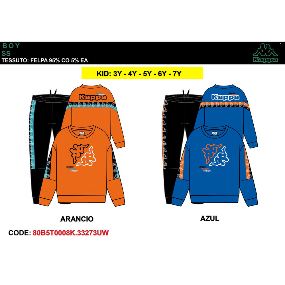 Tuta bambino primavera composta da felpina a paricollo, pantalone in cotone Kappa Tg. 3/7 Assortimento per Tg. e colore min. 5 pz. Tg. 3-4-5-6-7