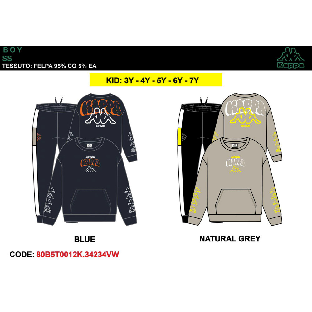 Tuta bambino primavera composta da felpina a paricollo, pantalone in cotone Kappa Tg. 3/7 Assortimento per Tg. e colore min. 5 pz. Tg. 3-4-5-6-7