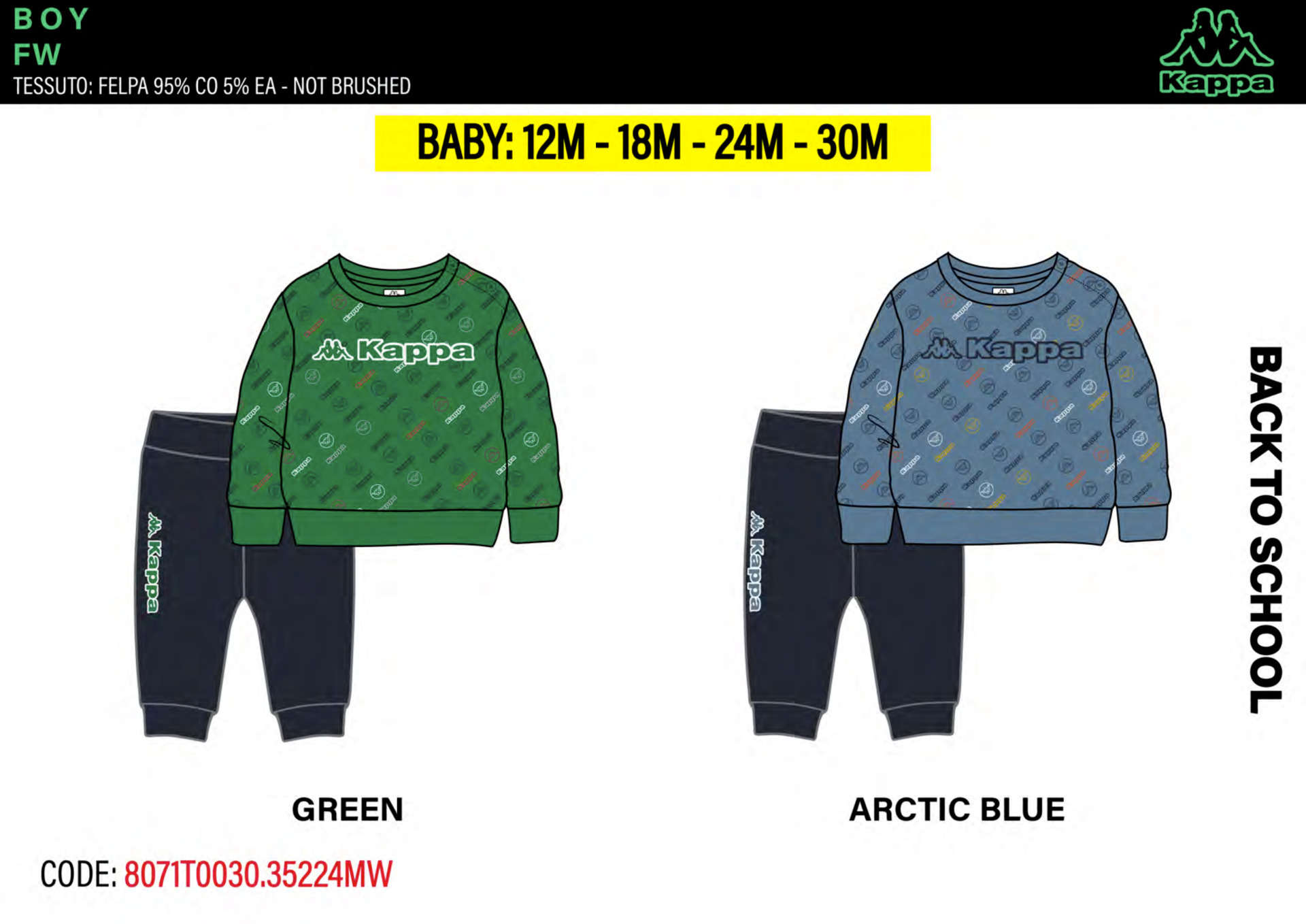 Tuta neonato primavera composta da felpina a paricollo, pantalone in cotone Kappa Tg. 12/30 Assortimento per Tg. e colore min. 4 pz. Tg. 12-18-24-30