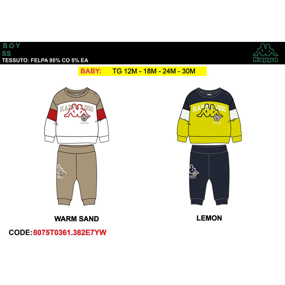 Tuta neonato primavera composta da felpina a paricollo, pantalone in cotone Kappa Tg. 12/30 Assortimento per Tg. e colore min. 4 pz. Tg. 12-18-24-30