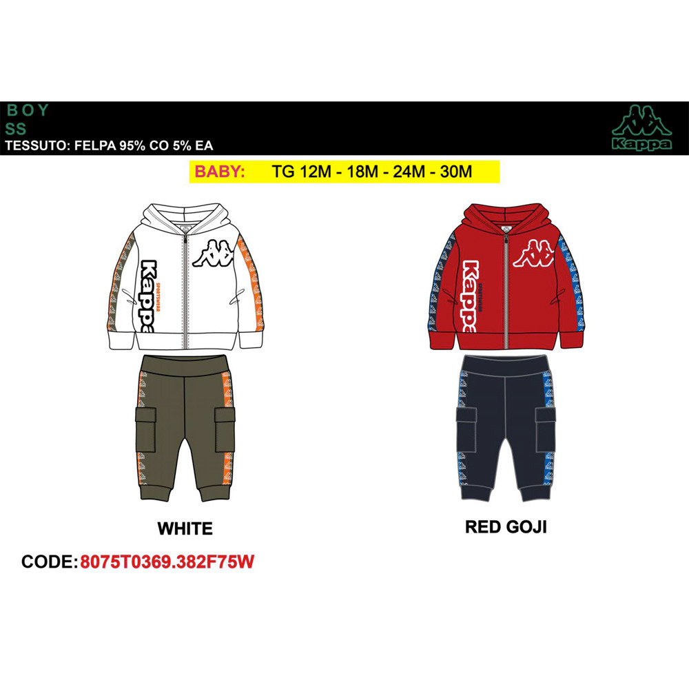 Tuta neonato primavera composta da felpina con zip e cappuccio, pantalone in cotone Kappa Tg. 12/30 Assortimento per Tg. e colore min. 4 pz. Tg. 12-18-24-30
