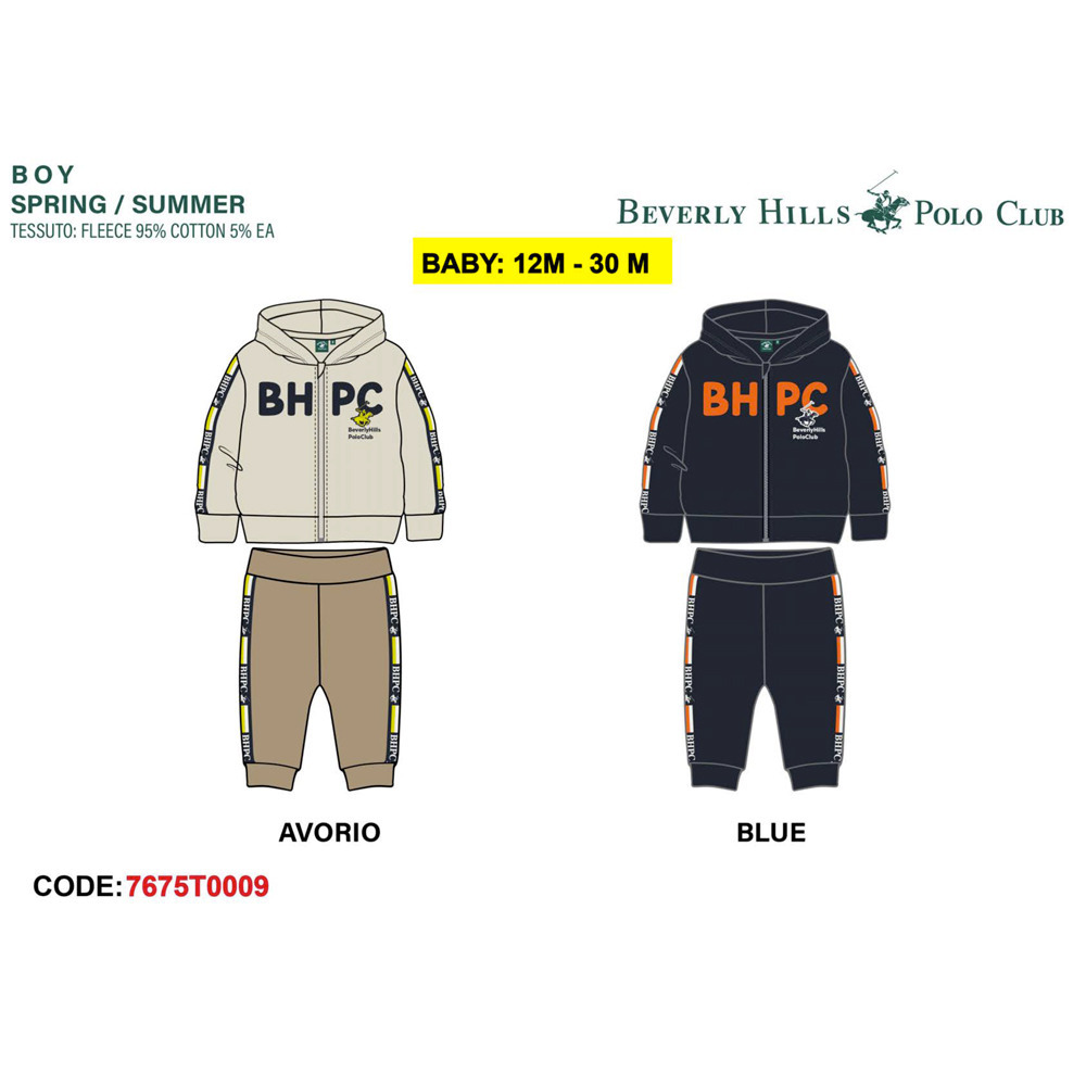Tuta neonato primavera composto da felpina con zip e cappuccio, pantalone in cotone Polo Club Tg. 12/30 Assortimento per Tg. e colore min. 4 pz. Tg. 12-18-24-30