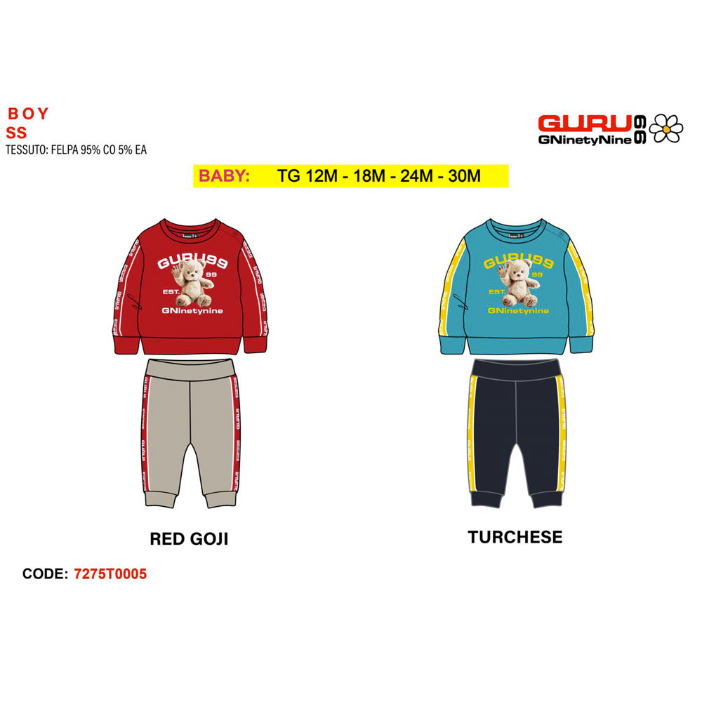 Tuta primavera neonato composta da felpina a paricollo, pantalone in cotone Guru Tg. 12/30 Assortimento per Tg. e colore min. 4 pz. Tg. 12-18-24-30