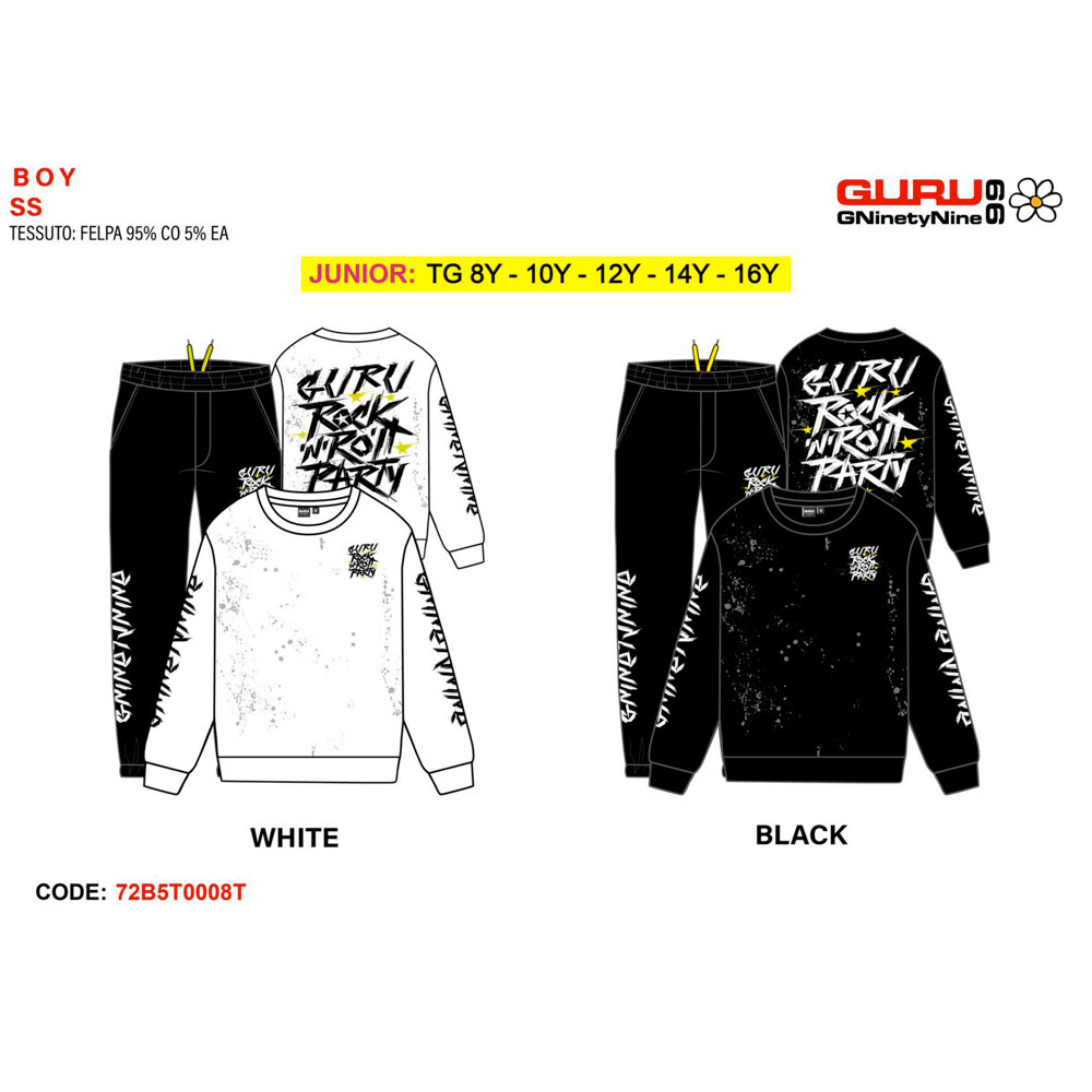 Tuta primavera ragazzo composta da felpina a paricollo, pantalone in cotone Guru Tg. 8/16 Assortimento per Tg. e colore min. 5 pz. Tg. 8-10-12-14-16