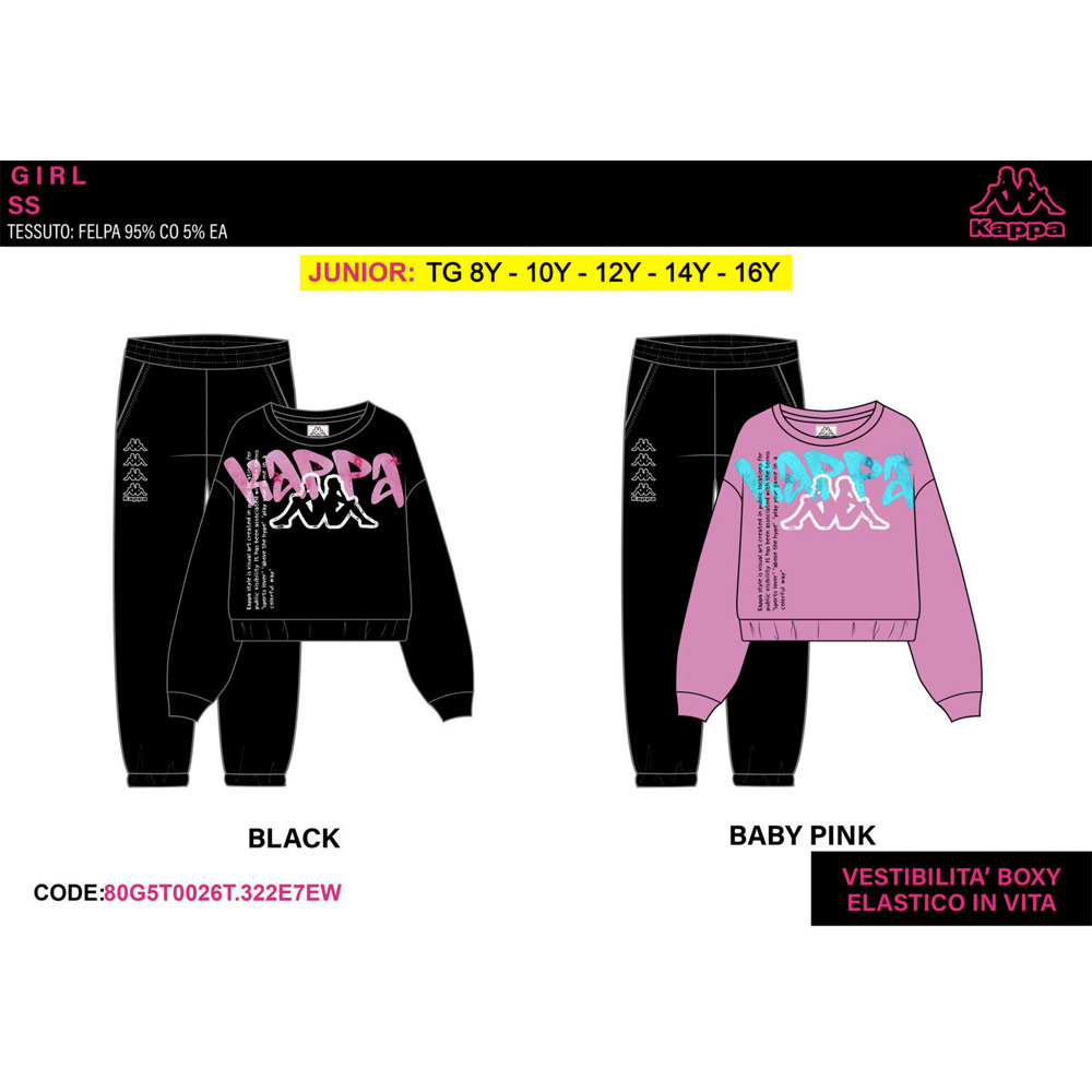 Tuta ragazza primavera composto da felpina a paricollo, pantalone in cotone Kappa Tg. 8/16 Assortimento per Tg. e colore min. 5 pz. Tg. 8-10-12-14-16
