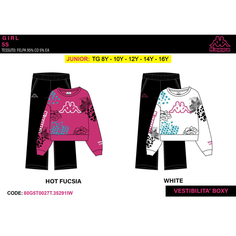 Tuta ragazza primavera composta da felpina a paricollo, pantalone in cotone Kappa Tg. 8/16 Assortimento per Tg. e colore min. 5 pz. Tg. 8-10-12-14-16