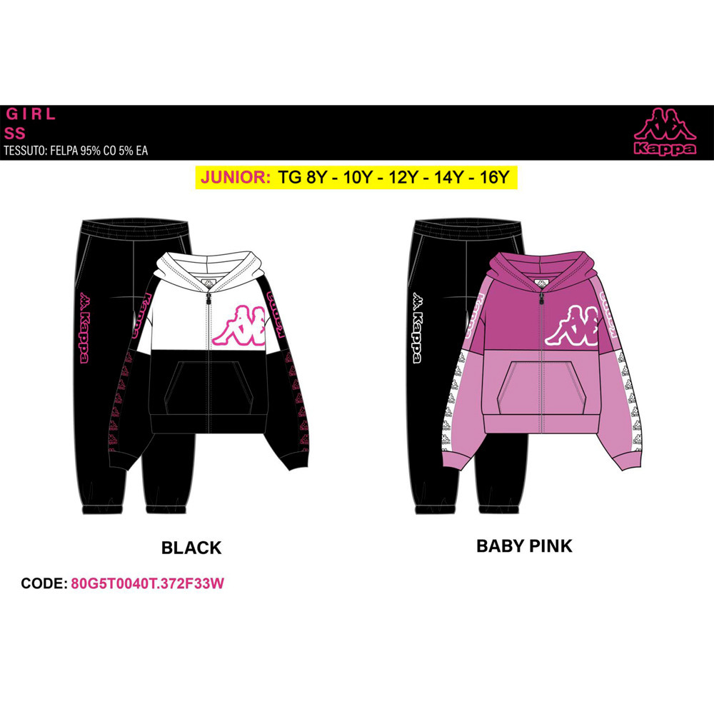 Tuta ragazza primavera composto da felpina con zip e cappuccio, pantalone in cotone Kappa Tg. 8/16 Assortimento per Tg. e colore min. 5 pz. Tg. 8-10-12-14-16