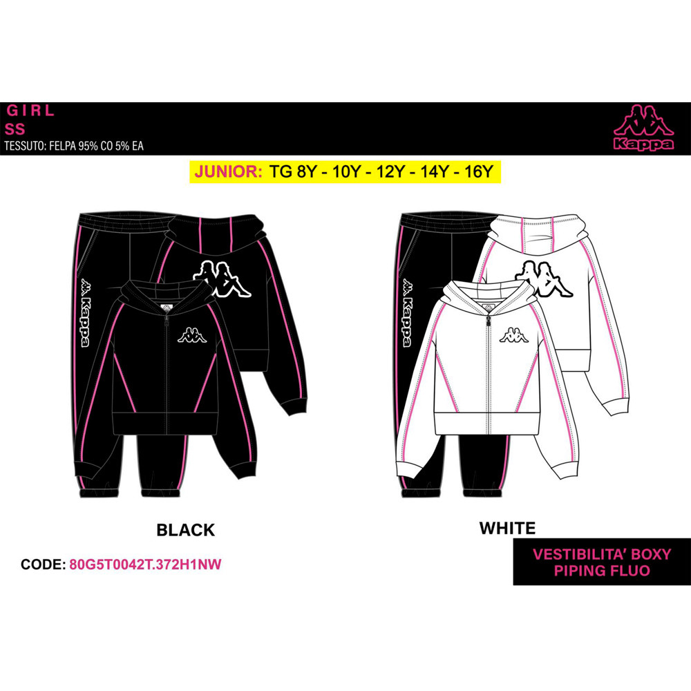 Tuta ragazza primavera composto da felpina con zip e cappuccio, pantalone in cotone Kappa Tg. 8/16 Assortimento per Tg. e colore min. 5 pz. Tg. 8-10-12-14-16