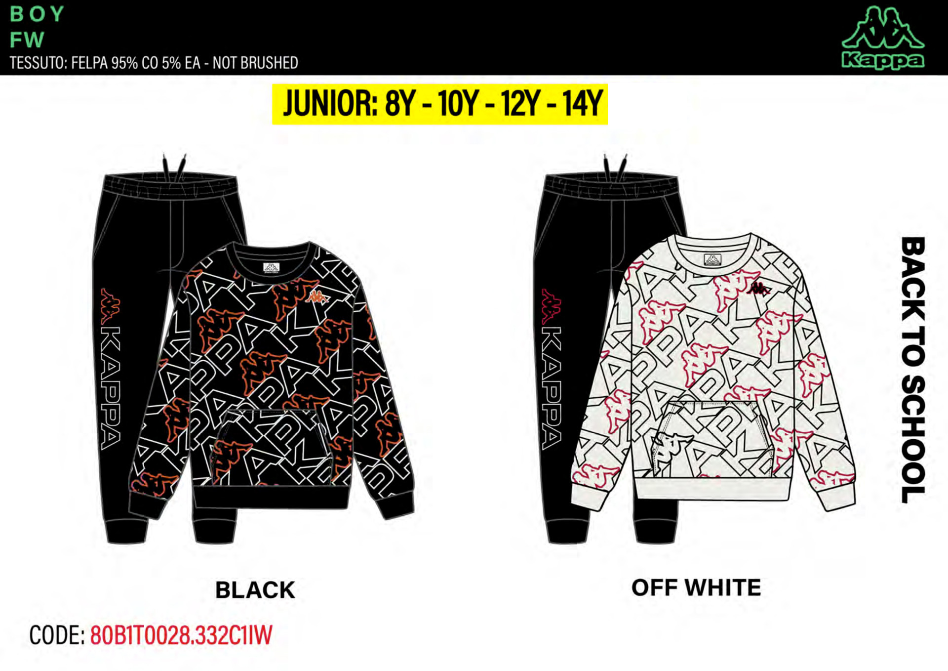 Tuta ragazzo primavera composta da felpina a paricollo, pantalone in cotone Kappa Tg. 8/14 Assortimento per Tg. e colore min. 4 pz. Tg. 8-10-12-14