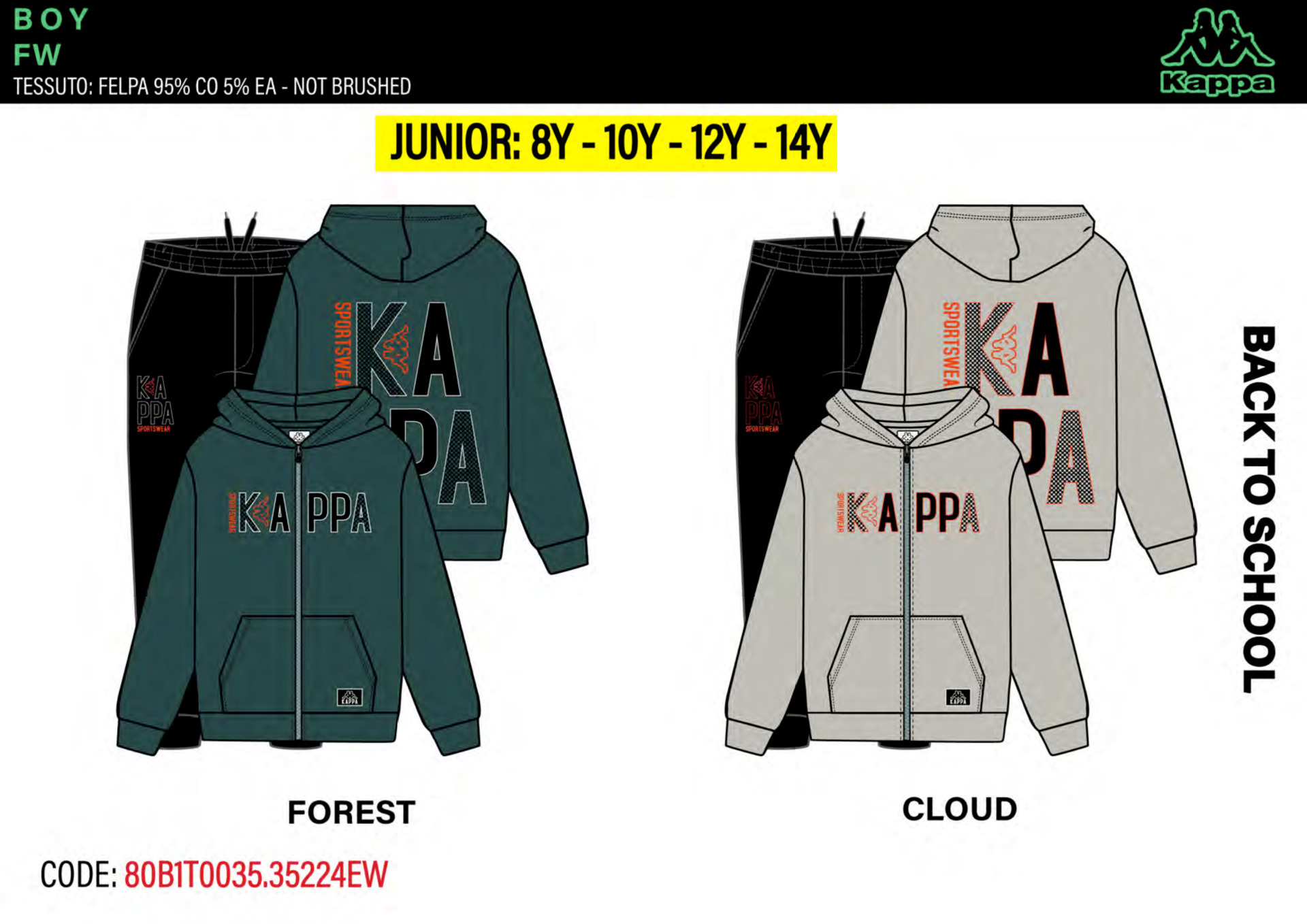 Tuta ragazzo primavera composta da felpina con zip, pantalone in cotone Kappa Tg. 8/14 Assortimento per Tg. e colore min. 4 pz. Tg. 8-10-12-14