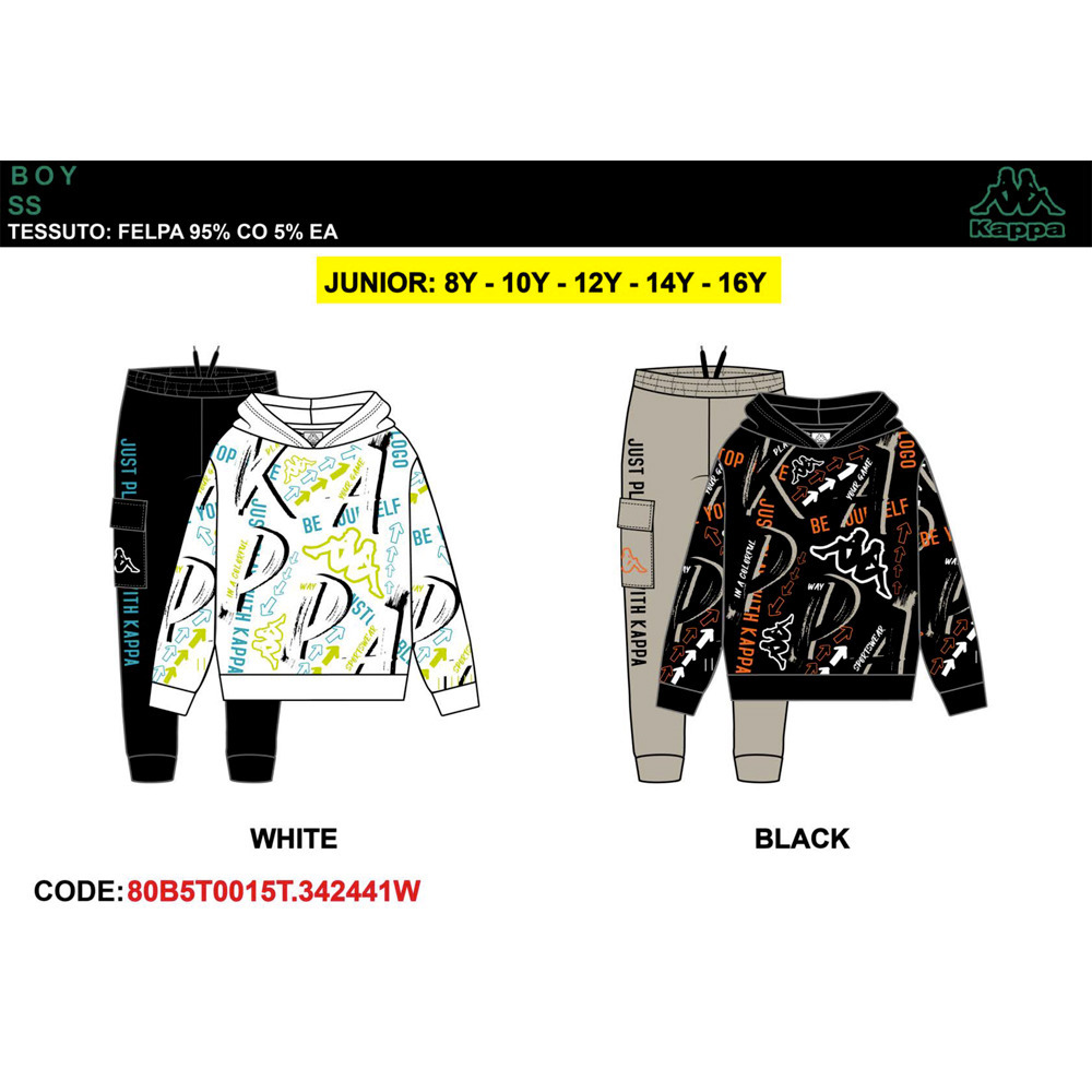 Tuta ragazzo primavera composta da felpina con cappuccio, pantalone in cotone Kappa Tg. 8/16 Assortimento per Tg. e colore min. 5 pz. Tg. 8-10-12-14-16